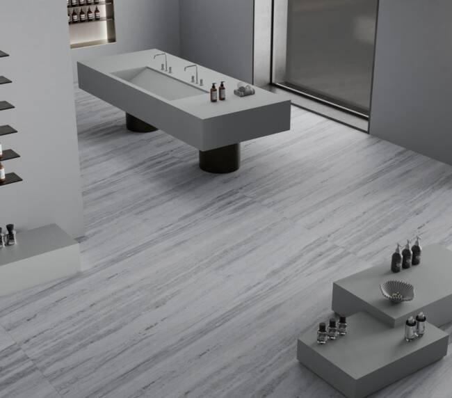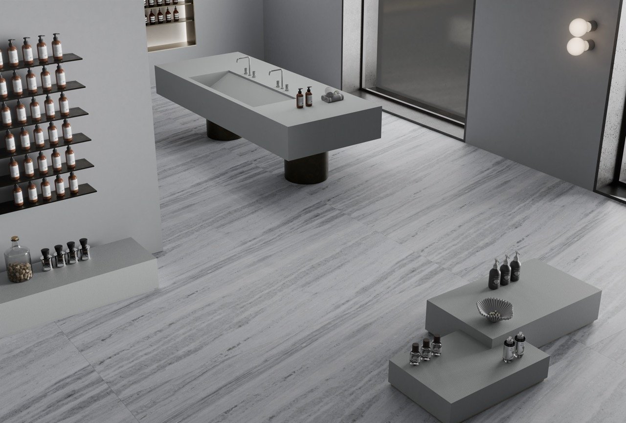 Bianco Fusion is a serene expression of balance, where soft grey veining flows gently across a white canvas. Its natural movement evokes calm continuity, bringing lightness and refinement to interior spaces. Subtle yet distinct, this marble embodies modern purity and timeless character, ideal for creating spaces that feel open, composed, and quietly luxurious.