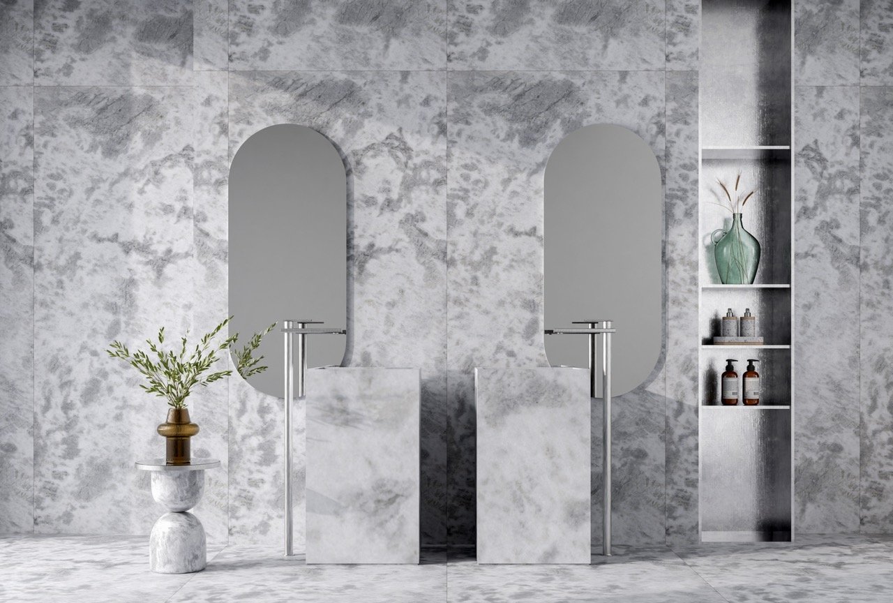 Grigio Cloud drifts with a soft, mist-like pattern that brings a sense of calm movement to any space. Its gentle grey tones blend seamlessly across the surface, creating a quiet, atmospheric presence. Subtle yet expressive, this marble adds modern purity and natural depth, ideal for interiors that seek serenity, openness, and refined character.