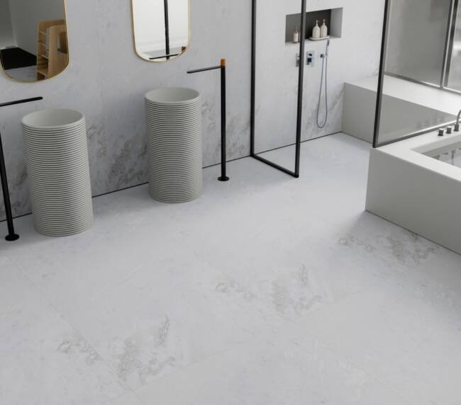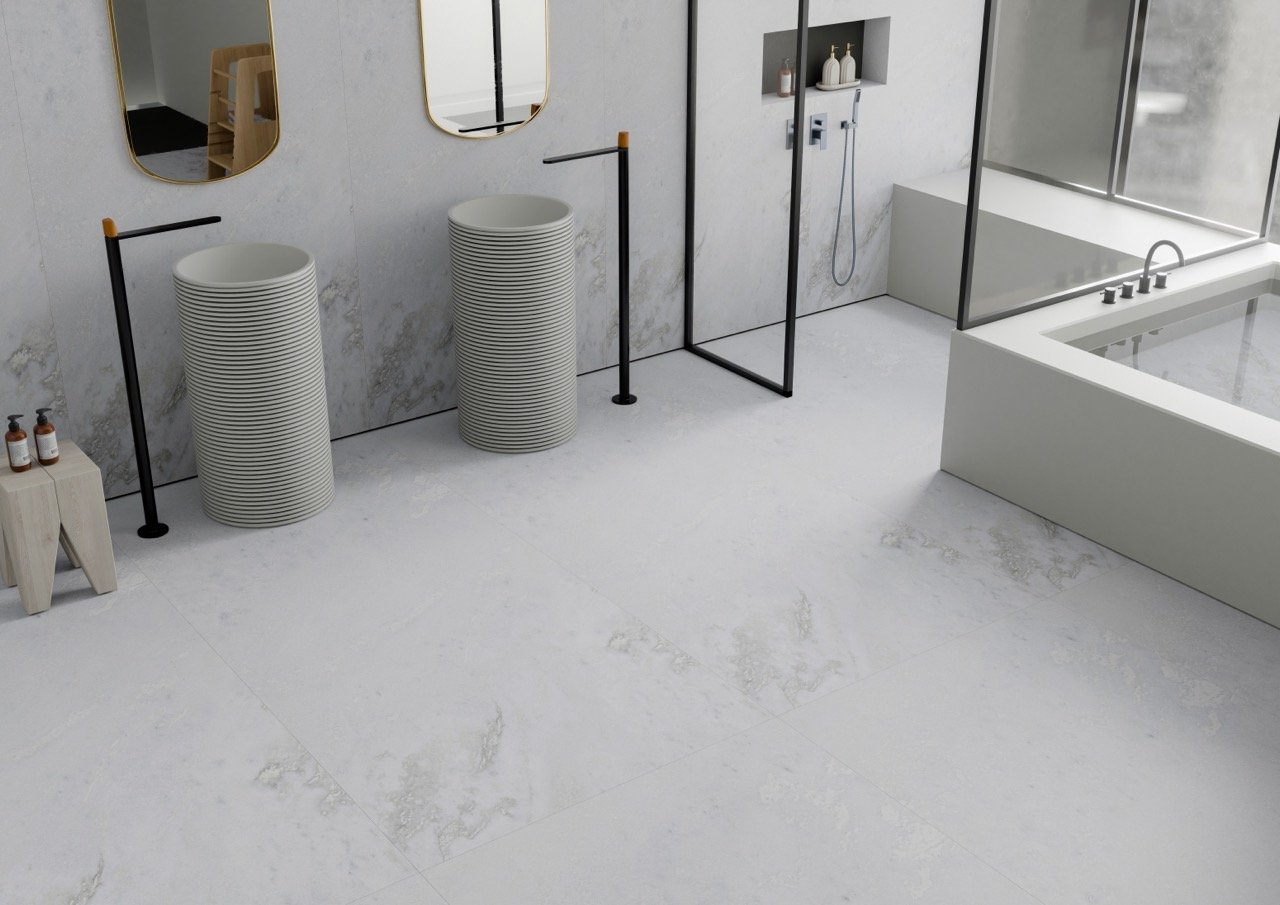 Verde Whisper carries a soft interplay of white and muted green tones, creating a surface that feels refreshing and quietly refined. Its gentle movement brings a sense of natural clarity, making spaces feel bright, open, and effortlessly composed. With its subtle elegance and serene texture, this marble adds a touch of purity and modern calm to contemporary interiors.